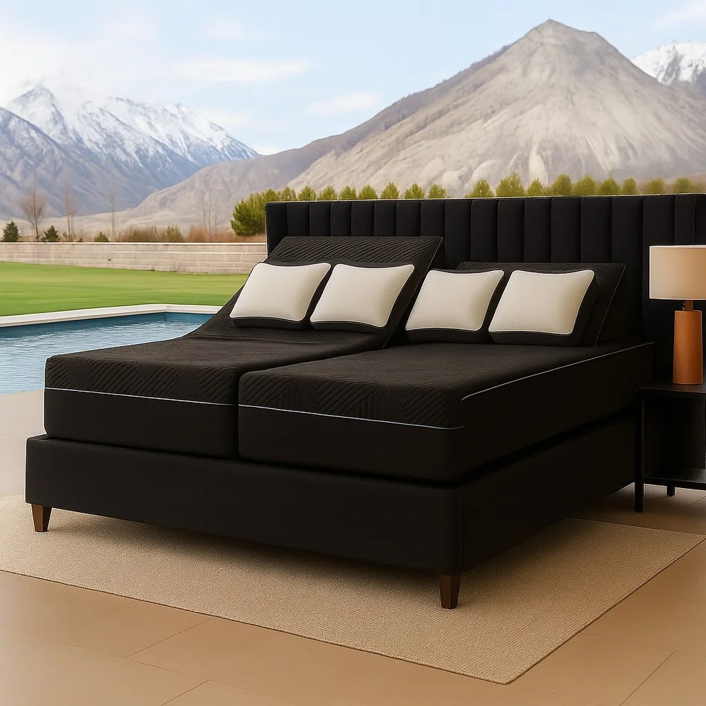 The Château Luxe Bundle™ includes the premium Château Bliss OmniPhase Chill 13″ Hybrid Mattress, which features plush ActivAir™ foam and three advanced cooling technologies, and the smart Château Diamond Adjustable Base. This bundle also includes 2 Ice Cloud™ Pillows and Supima Cotton Sheets.